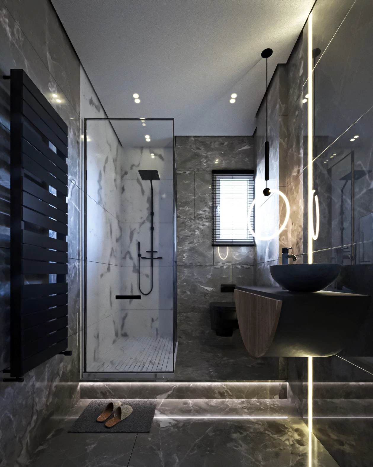 Villa Obour was designed with an open-concept layout, large glass windows, and a sophisticated color palette of neutral tones with gold and wood accents. Premium materials like marble, glass, and high-quality wood were used to create a refined aesthetic. Smart lighting and climate control systems were integrated, while outdoor spaces featured a landscaped garden and a private pool for a seamless connection with nature.