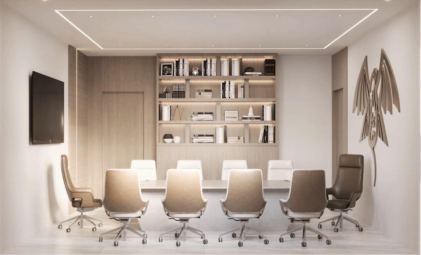 احتاجت حظيرة القاسم إلى مساحة عمل توازن بين الكفاءة العصرية والجماليات الفاخرة. كان على التصميم أن يضمن سير العمل بسلاسة, وتوفير مناطق اجتماعات مريحة وخاصة، وأن يعكس المعايير العالية للشركة. كانت المواد الفاخرة والتشطيبات المتطورة ضرورية لتحقيق الأجواء المطلوبة.