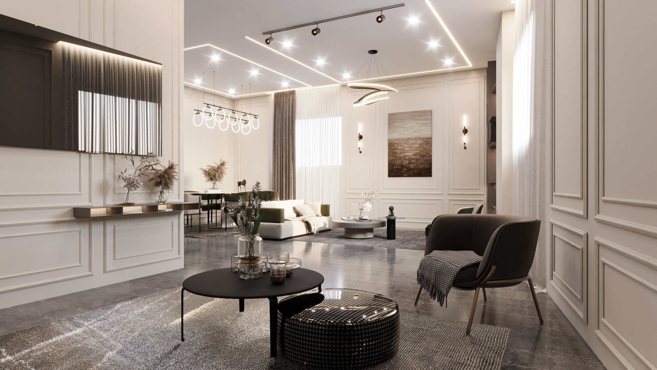 The client wanted a luxurious and modern unit with spacious interiors, abundant natural light, and seamless indoor-outdoor living. The design had to balance elegance with functionality, incorporating high-end materials and smart home features for enhanced comfort and convenience.